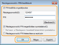 [PIN-kód beállítása] A PIN-kód beállításához jelölje be a jelölőnégyzetet, majd írja be ugyanazt az értéket a [PIN-kód] és a [Még egyszer] szövegmezőbe.