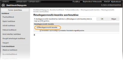 A részlegazonosító-kezelés engedélyezéséhez jelölje be ezt a jelölőnégyzetet. Ha nem szeretné használni a részlegazonosító-kezelést, akkor törölje a jelet a jelölőnégyzetből.