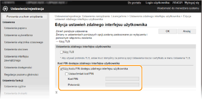 Jeżeli inicjowane są <Ustawienia zarządzania>Kod PIN do dostępu do Zdalnego interfejsu użytkownika jest także inicjowany. Po inicjalizacji należy zresetować kod PIN. <Zainicjuj menu> *