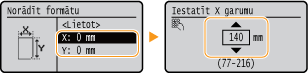 Izvēlieties <X> vai <Y> un ievadiet katras malas garumu, izmantojot ciparu taustiņus.