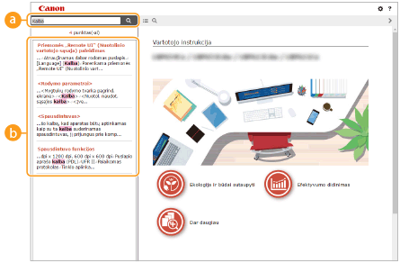 Spustelėkite, kad būtų rodoma, kaip peržiūrėti vadovą Vartotojo instrukcija, atlikti paiešką ir kita informacija.
