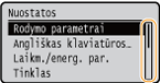 Galite keisti įvairius su ekranu susijusius parametrus, pavyzdžiui, ekrano kalbą: <Rodymo parametrai>