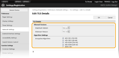 Valdymo pulto naudojimasTaip pat galima įjungti arba išjungti TLS šifruotąjį ryšį <Meniu> ekrane Pagrindinis. <Nuotolinė naudotojo sąsaja>/<Nuot. naud. sąs. naud.>