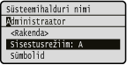 Selleks, et kuvada sisestatavad sümbolid kuval, vajutage või valige <Sümbolid> ja vajutage , kui sisestatava teksti tüüp on <A> või <a>. Valige / / / abil sisestatav sümbol ja vajutage . |