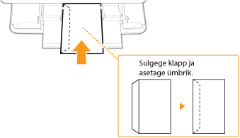 Asetage ümbrikud (Monarch, COM10, DL või ISO-C5) püstpaigutusega (lühike serv seadme poole) ja liimita külg (esikülg) üleval. Ümbrike tagaküljele ei saa printida.