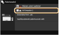 Kui paigaldatud on valikuline cassette feeding module, kuvatakse ka selle paberisahtel.