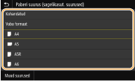 Kui sisestatud paberi formaati ei kuvata, valige vahekaart <Muud suurused>.