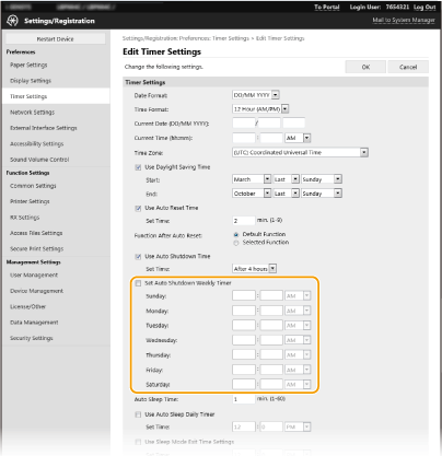 Toidet ei lülitata määratud ajal automaatselt välja*Kui andmete märgutuli põleb või vilgub Kui kuvatakse menüüekraan või loenduri kontrollimise ekraan Kui imporditakse/eksporditakse sätete andmeid Kui värskendatakse püsivara Kui sätte <Kondensatsiooni eemaldamine> olekuks on määratud <Sees> *Kui toidet ei saa määratud ajal automaatselt välja lülitada, proovitakse seda teha uuesti kuni kümme korda ühe minuti pikkuste intervallidega. Kui toidet ei saa välja lülitada ka pärast kümnendat katset, siis pole automaatne sulgemine sel päeval võimalik. |