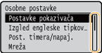 Možete promijeniti razne postavke vezane uz zaslon, kao što je jezik zaslona: <Postavke pokazivača>