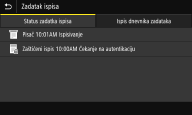 Prikazuje trenutni status odabrane stavke. Zaslon <Zadatak ispisa> prikazan ispod kao primjer.