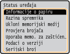 <Provjera brojača>Prikazuje ukupnu količinu ispisa.