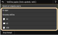 Ako registrirate veličine papira koju često koristite na gumbima od <S1> do <S3>, možete ih odabirati dodirom. Registriranje prilagođene veličine papira