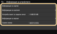 Показва мрежовите настройки, като напр. IP адреса на устройството, и състоянието, като напр. условията за безжична LAN комуникация.