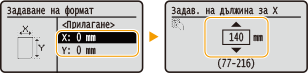 Изберете <X> или <Y> и въведете дължината на всяка страна с помощта на бутоните с цифри.