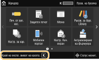 Когато се изведе съобщение При печат – можете да продължите да отпечатвате оригинала. Ако се изведе съобщение, докато получавате I-факс документ, устройството няма да изпълни отпечатването, за да се избегнат неясните разпечатки. За да продължите да печатате дори когато в касетата остава малко количество тонер, задайте настройката <Прод. печат. При ниско колич.>/<Прод. печат. Когато кол. в кас. е малко> на <Вкл.>. <Прод. печат. При ниско колич.>/<Прод. печат. Когато кол. в кас. е малко>Укажете кога да се извежда съобщение |