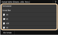 Dacă înregistraţi formatul de hârtie pe care îl utilizaţi frecvent pe butoanele <S1> – <S3>, puteţi să le apelaţi cu o singură atingere. Înregistrarea unui format de hârtie personalizat