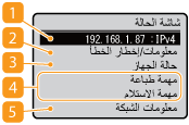 يمكنك تحديد ما إذا كان سيتم عرض عنوان IP على شاشة <شاشة الحالة> عن طريق تعيين الإعداد على <عرض عنوان IP>.