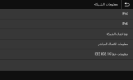 يعرض إعدادات الشبكة مثل عنوان IP الخاص بالجهاز وحالته مثل حالة اتصالات الشبكات المحلية اللاسلكية.