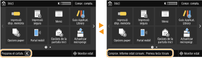 Es mostren missatges a la pantalla en situacions com ara quan no queda paper o quan s'ha arribat al final de la vida útil del cartutx de tòner. Per obtenir més informació, vegeu "Resolució de problemes (FAQ)" al manual en línia al lloc web.