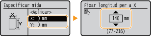 introduïu l'amplada de paper ![]() ![]() <Y> introduïu la longitud de paper ![]() ![]()