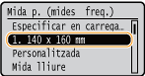 Les mides de paper desades d'acord amb el procediment anterior es mostren a la pantalla de selecció de la mida de paper per al calaix de paper o la safata multiús.