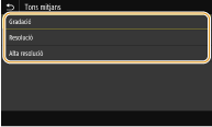 Podeu utilitzar <Ajust fi> o <Densitat (Ajust fi)> per ajustar la densitat del tòner segons tres nivells de densitat: densitat alta, densitat mitjana i densitat baixa.