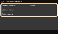 Seleccioneu primer <Obtenció automàtica> i, a continuació <Desact.> a <Obtenció automàtica>