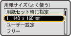 定形サイズ以外の用紙で、よく使うサイズを3種類まで登録できます。
