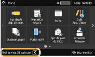 Cuando aparece un mensaje Cuando imprima, podrá seguir imprimiendo el original. Si aparece un mensaje mientras se está recibiendo un documento de I-fax, el equipo no imprimirá para evitar que las impresiones salgan poco claras. Para seguir imprimiendo aunque la cantidad restante en el cartucho de tóner sea baja, establezca <Seguir imp. Si cart. bajo>/<Seguir imp. cuando cant. cart. sea baja> en <On>. <Seguir imp. Si cart. bajo>/<Seguir imp. cuando cant. cart. sea baja>Especifique cuándo desea que aparezca un mensaje |
