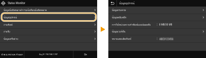 คุณสามารถเปลี่ยนการตั้งค่าที่เกี่ยวข้องกับจอแสดงผลได้หลายอย่าง เช่น ภาษาที่แสดงผล: <การตั้งค่าการแสดงผล> คุณสามารถเปลี่ยนหน้าจอที่ปรากฏขึ้นโดยอัตโนมัติ เมื่อเครื่องอยู่ในช่วงที่ไม่มีการใช้งานเป็นระยะเวลาตามที่ระบุไว้: <ฟังก์ชันหลังจากรีเซ็ตอัตโนมัติ> คุณสามารถเปลี่ยนการตั้งค่าที่เกี่ยวข้องกับการช่วยสำหรับการเข้าถึงได้หลายอย่าง เช่น ความเร็วในการเลื่อน: <การช่วยสำหรับการเข้าถึง> |