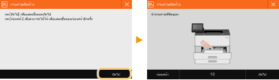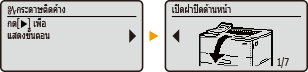 ในบางกรณี เมื่อเกิดข้อผิดพลาดขึ้น จะมีคำแนะนำเกี่ยวกับวิธีการตอบสนองต่อข้อผิดพลาดนั้นๆ ปรากฏขึ้น ให้ปฏิบัติตามคำแนะนำบนหน้าจอเพื่อแก้ไขปัญหา หน้าจอที่ปรากฏขึ้นเมื่อกระดาษติดค้างจะแสดงเป็นตัวอย่างทางด้านล่าง
