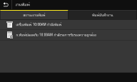 แสดงสถานะปัจจุบันของรายการที่เลือกไว้ หน้าจอ <สถานะงานพิมพ์> แสดงอยู่ด้านล่างเพื่อเป็นตัวอย่าง