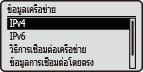 แสดงการตั้งค่าเครือข่าย เช่น ที่อยู่ IP ของเครื่องและสถานะ เช่น สภาพของการสื่อสารผ่าน LAN แบบไร้สาย