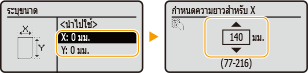 เลือก <X> หรือ <Y> และป้อนความยาวของแต่ละด้านโดยใช้ปุ่มตัวเลข