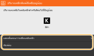ถ้าข้อความนี้ปรากฏขึ้นขณะที่กำลังรับเอกสาร I-Fax เครื่องจะไม่พิมพ์เพื่อป้องกันงานพิมพ์ที่ไม่ชัดเจน ข้อมูลที่ได้รับถูกจัดเก็บในหน่วยความจำแทน ในการพิมพ์ต่อไป แม้ว่าปริมาณหมึกในตลับหมึกจะเหลือน้อย ให้ตั้งค่า <พิมพ์ต่อ เมื่อหมึกเหลือน้อย>/<พิมพ์ต่อ เมื่อปริมาณในตลับหมึกเหลือน้อย> เป็น <เปิด> <พิมพ์ต่อ เมื่อหมึกเหลือน้อย>/<พิมพ์ต่อ เมื่อปริมาณในตลับหมึกเหลือน้อย> |