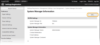 คุณสามารถเปลี่ยนการตั้งค่าบางอย่าง เมื่อเข้าสู่ระบบในโหมดผู้จัดการระบบเท่านั้น การตั้งค่าบางอย่างอาจต้องมีการดำเนินงานที่แตกต่างไปจากขั้นตอนที่อธิบายในที่นี้ |
