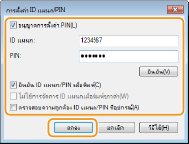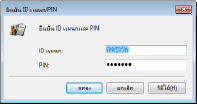คลิกเพื่อตรวจสอบว่าป้อน ID และ PIN ที่ถูกต้อง ฟังก์ชันนี้จะใช้งานไม่ได้ ถ้าเครื่องและคอมพิวเตอร์เชื่อมต่อกันผ่านพอร์ต USB หรือ WSD (Web Services on Devices)