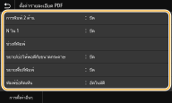 <พิมพ์ข้อคิดเห็น> การตั้งค่านี้จะระบุว่าจะพิมพ์คำบรรยายในไฟล์ PDF หรือไม่ ![]() <ปิด> ไม่พิมพ์คำบรรยาย <อัตโนมัติ> พิมพ์เฉพาะคำบรรยายที่มีการระบุให้พิมพ์ในไฟล์ PDF |