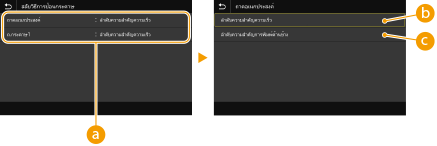 ดอกจัน (*)การตั้งค่าที่กำกับด้วยดอกจัน (*) อาจไม่แสดงผล ขึ้นอยู่กับรุ่นที่คุณใช้ ตัวเลือก หรือรายการตั้งค่าอื่นๆ |