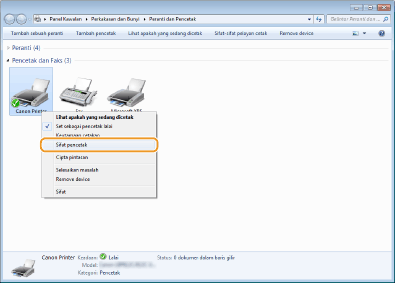 Klik kanan ikon pemacu pencetak untuk mesin ini, dan klik [Printer properties] atau [Properties].