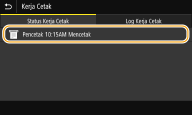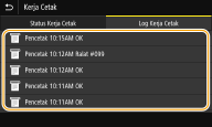 Apabila <Papar Log Kerja> ditetapkan kepada <Tak Aktif>, anda tidak boleh menyemak log cetakan. <Papar Log Kerja> |
