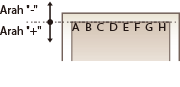 Untuk <Ofset Sisi Pendek (Depan)>/<Ofset Sisi Pendek (Belakang)>, menentukan nilai dengan tanda "+" untuk memindah kedudukan cetakan dalam arah kiri ke kanan. Untuk <Ofset Sisi Panjang (Depan)>/<Ofset Sisi Panjang (Belakang)>, tentukan nilai dengan tanda "+" untuk mengalih arah atas ke bawah. Untuk mengalih ke arah terbalik, tentukan tanda "-".