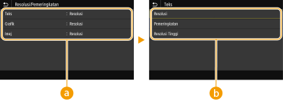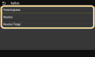 Anda boleh menggunakan <Laras Halus> atau <Kpadatn (Laras Halus)> untuk melaraskan kepadatan toner kepada tiga peringkat kepadatan: kepadatan tinggi, kepadatan sederhana dan kepadatan rendah. |
