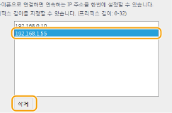 아웃바운드 필터에 [거부]가 선택된 경우 송신 멀티캐스트 및 브로드캐스트 패킷을 필터링할 수 없습니다. 예외에서 IP 주소 삭제 IP 주소를 선택하고 [삭제]를 클릭합니다. |