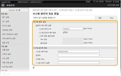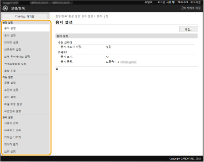 일부 설정은 시스템 관리자 모드로 로그인한 경우에만 변경할 수 있습니다. 일부 설정은 여기에서 설명하는 절차와 다른 조작이 필요할 수 있습니다. |