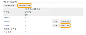 카운트를 0으로 되돌리려면 [부문 ID] 아래의 해당 텍스트 링크를 클릭하고 [카운트 삭제]  [확인]을 클릭합니다. 모든 부서 ID의 카운트를 0으로 되돌리려면 [모든 카운트 삭제]  [확인]을 클릭합니다. |