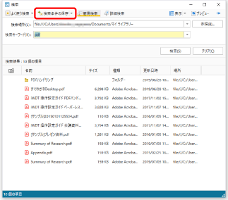 検索画面で設定した詳細検索の検索条件を保存できます。保存した検索条件を指定して、検索できます。