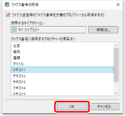 ファクス番号を自動的に取得できるのは、[ファクス番号の取得]で選択したライブラリーに格納された文書のみです。その他のライブラリーの文書の場合、プロパティーにファクス番号が指定されている場合でも、ファクス番号を自動的に取得できません。 |