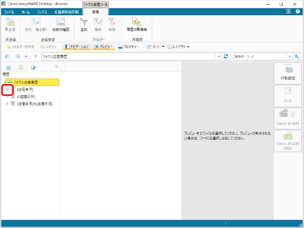 グループ名の右には、設定されているフィルター条件に該当する送信履歴件数が表示されます。 フィルター条件が[宛先名]、または[ファクス番号]の場合、同報送信された送信履歴はナビゲーションウィンドウに[同報送信]と表示され、宛先名やファクス番号ごとには表示されません。 デバイスの送信処理で送信履歴が追加されたとき、および送信状況が更新されたときに、選択されているフィルターの表示内容は自動で更新されます。 |