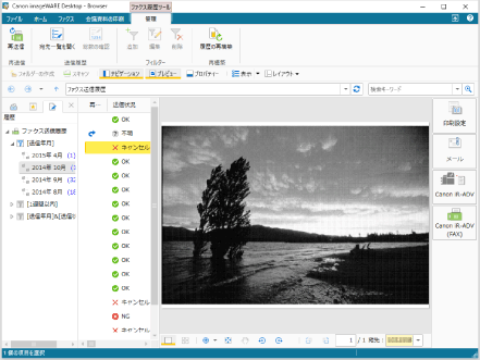 プレビューウィンドウのサイズは、プレビューウィンドウの左側境界部分をドラッグして変更できます。 複数の送信履歴を選択した場合、プレビューは表示されません。 |